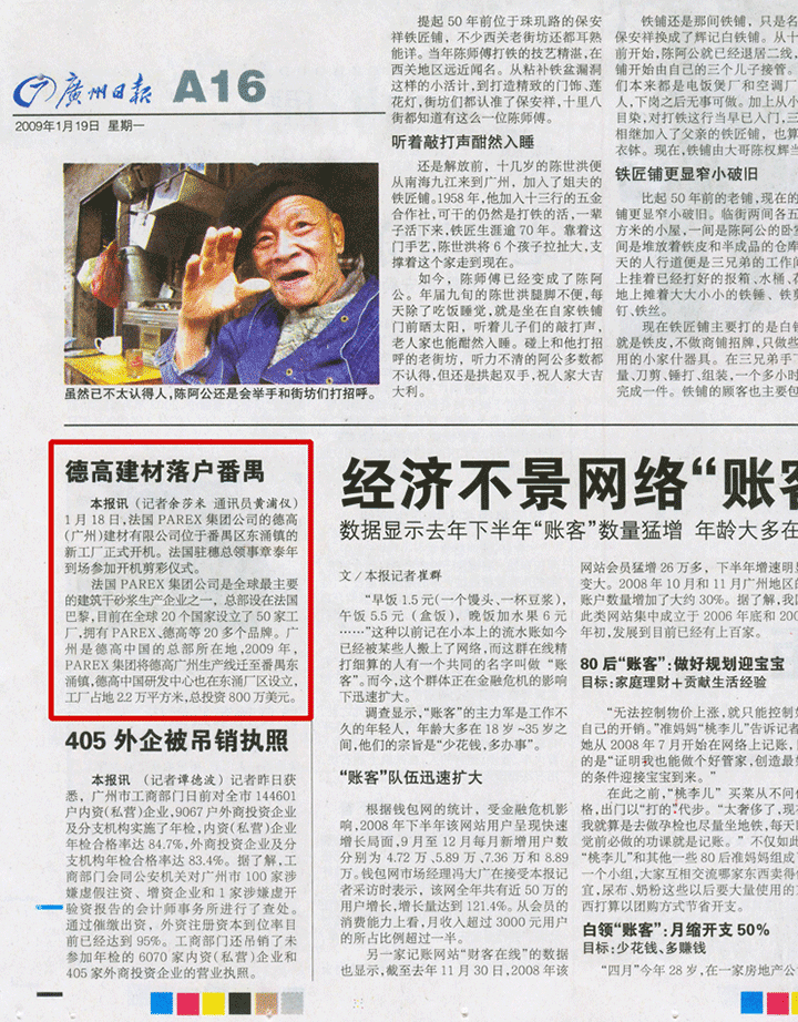廣州日報2009年1月19日報道—-德高建材落戶番禺