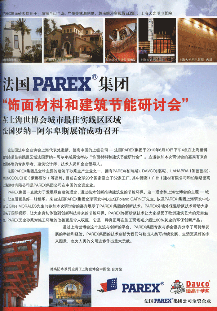 《中國砂漿》報導PAREX集團飾面材料和建筑節能研討