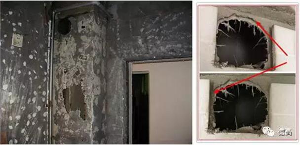 部分地產商為了節省成本,大量使用預制體煙道,這類煙道大多是以硫鋁酸鹽水泥內夾耐堿玻璃纖維網布,或普通硅酸鹽水泥內夾鋼絲網及其它增強材料預制而成,材質上沒多大問題,厚度才是問題所在——預制體煙道極薄。