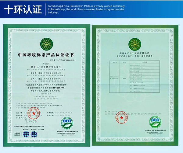 德高瓷磚膠獲得了國家環保十環認證,這也是中國最高標準的綠色環保認證。小伙伴們選購瓷磚膠時,一定要看清包裝上是否包含了環保認證標志。