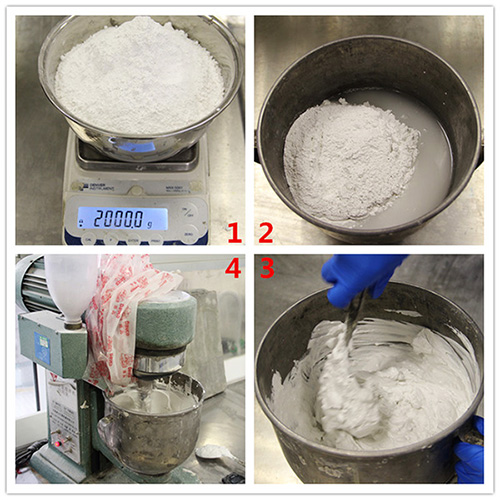 在實驗室中,德高工程師按照37%的濃度攪拌膩子粉,經過稱重、加水、手攪、機攪之后,共約4分鐘時間,膩子攪拌完畢。一般來說,質量優秀的膩子在3~5分鐘之間可以達到水粉完全交融的狀態,記者親測試手動攪拌過程,發現膩子加水攪成膩子膏,攪拌起來不費勁。