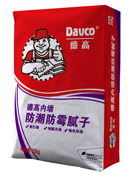 德高內墻防潮防霉膩子秉承德高二十年專業防水技術,在保證膩子施工性、強度、打磨性等基礎性能要求的前提下,將“防潮”功能創造性的引入內墻膩子產品,通過材料改性的方法,使得防潮防霉膩子可以在長期潮濕的環境下保持其性能的穩定。