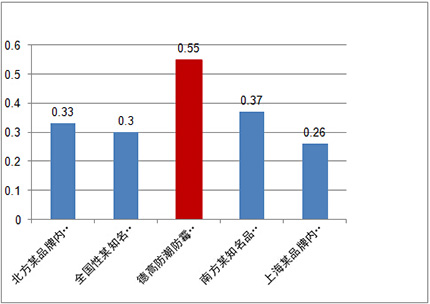 圖5 典型的內墻膩子浸水粘接強度拉拔測試結果(數值越高強度越好)