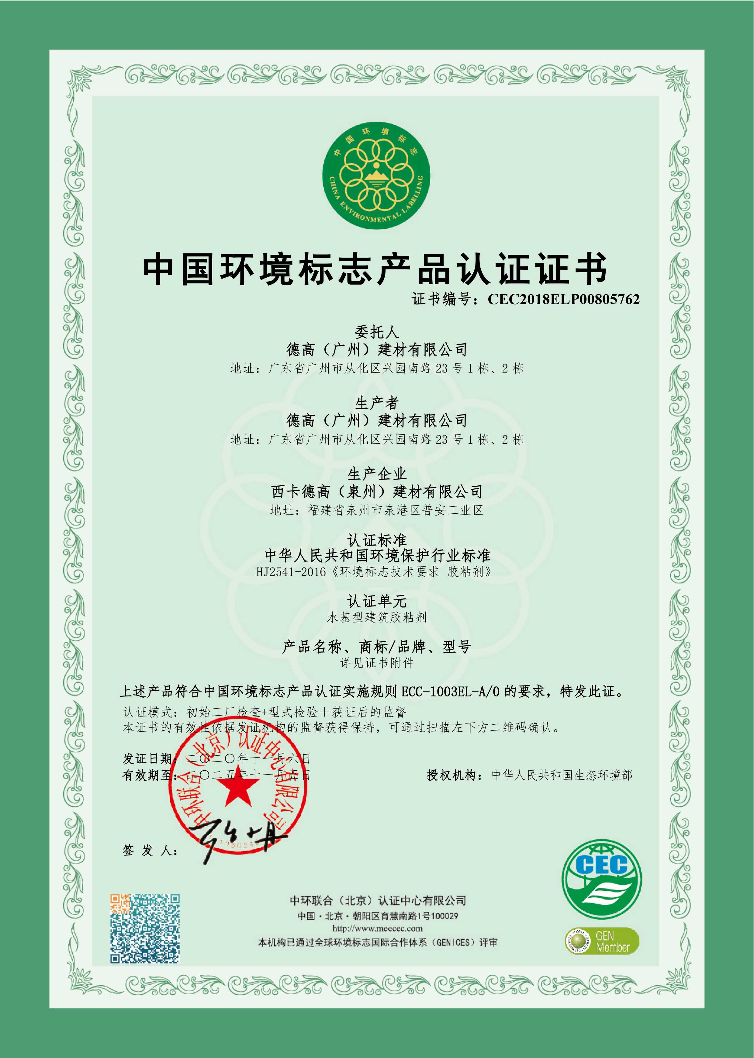 【概要描述】十環證書-泉州工廠-膠粘劑
