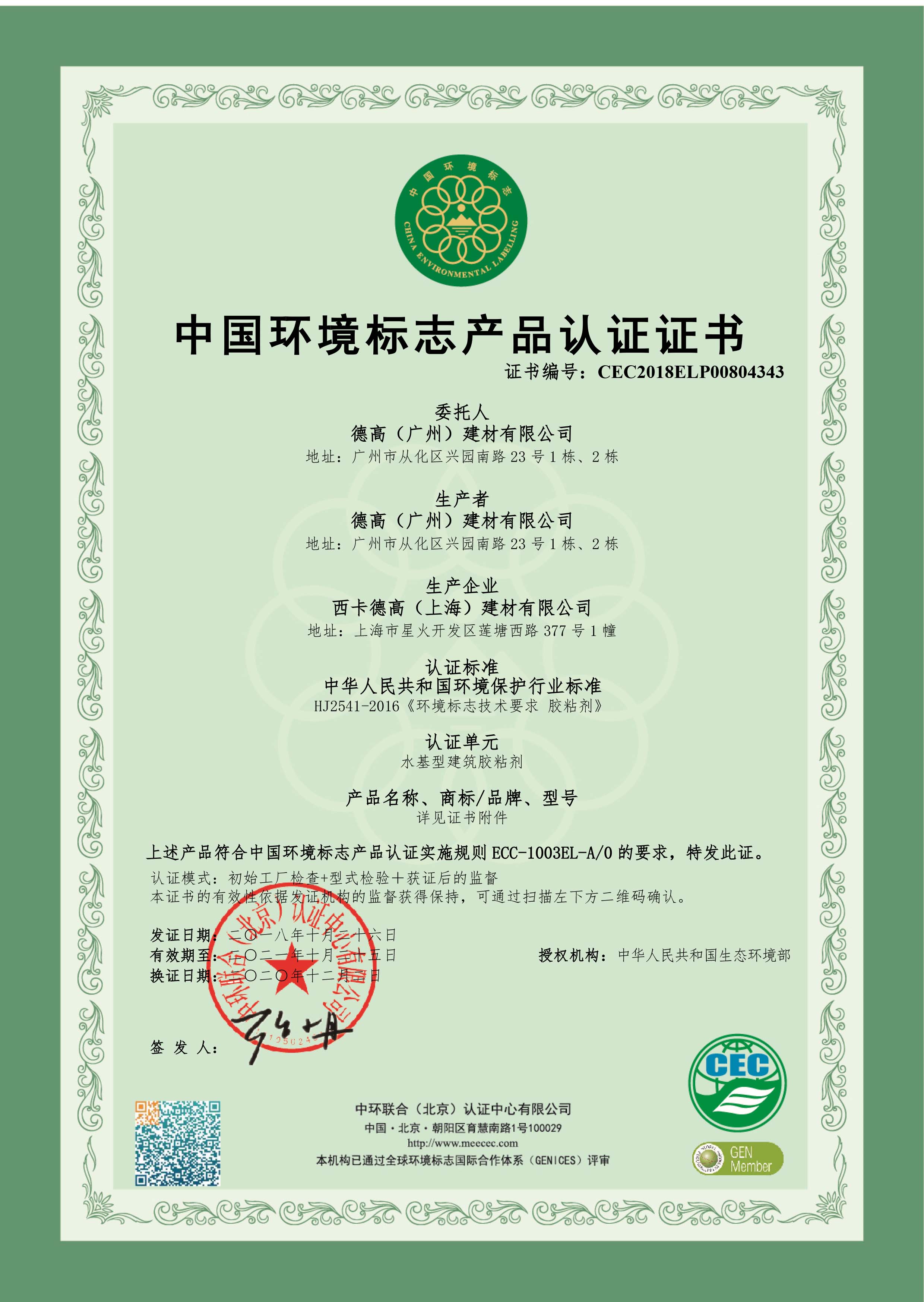 【概要描述】十環證書-上海工廠-膠粘劑