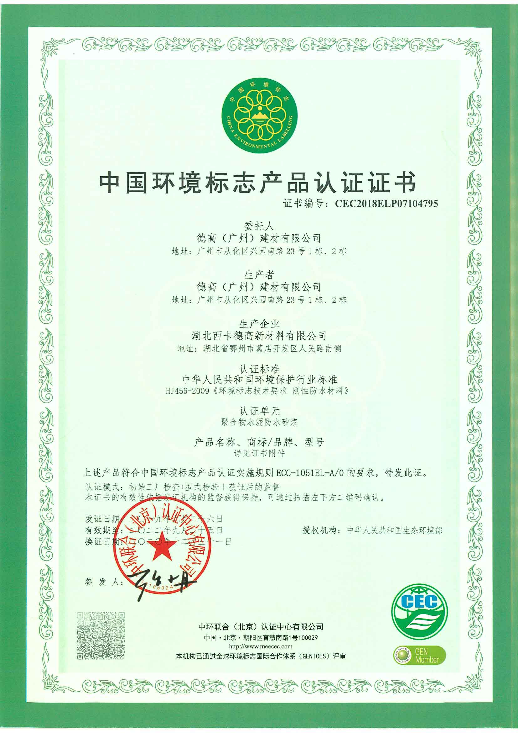 【概要描述】十環證書-武漢工廠-聚合物水泥防水砂漿